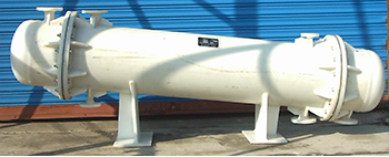 应用石墨改性聚丙烯制成的换热器,属国内较先进的换热设备。本设备采用石墨改性聚丙烯制成导热管,选用优质纯聚丙烯制成壳 体、管板、封头、法兰、接管等零件。